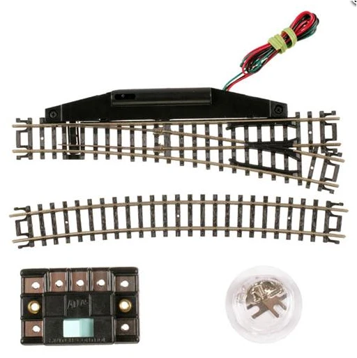 Remote control switches include the #56 Switch Control Box, and one piece of 19″ radius track.“