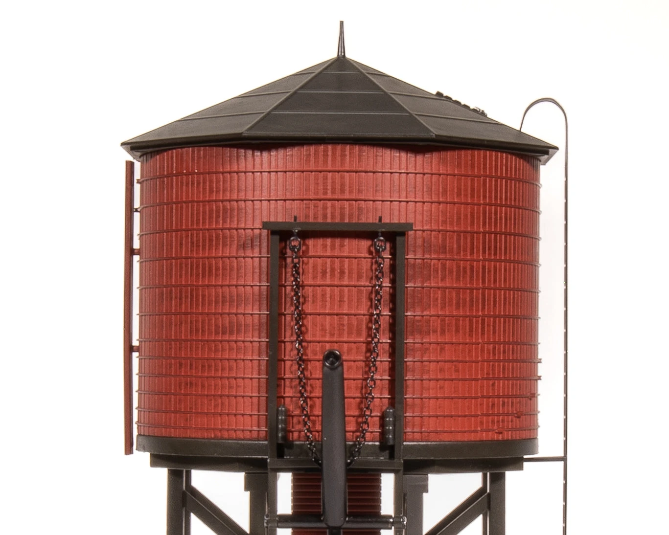 | MOTORIZED FILL SPOUT + SOUND EFFECTS! Broadway Limited Imports is proud to once again pioneer sound in HO! Our all-new Operating Water Tower is a faithful reproduction of the filling stations found on many water stops on Americas railroads. Water was an essential part of steam locomotive operation, so the Water Tower is a prototypically necessary addition to any steam route! Just attach the Water Tower to any standard 12V DC power supply (or stationary accessory DCC Decoder) and activate the motorized spout & sounds with the push of a button! |