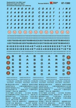 Microscale Industries 87-1380 Railroad Decal Set — Seaboard Air Line & Seaboard Coast Line Streamlined Passenger Car Lettering, HO Scale