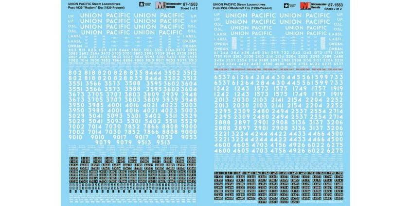 Microscale Industries 87-1563 Railroad Decal Set — Union Pacific Steam Locomotives 1939-Present (white Numbers And Lettering), HO Scale