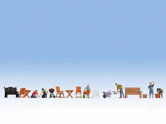 Noch Gmbh 16215 In The Garden With Accessories — 6 Figures, Garden Accessories, HO