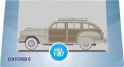 You can see all these physical features on the Oxford replica which is decorated in a stone beige colour with light and dark tan wood effect to create a mahogany finish. The interior is a brown red colour with beige steering wheel. The roof rack rails, bumper trim and wheels are chrome and our car sports the whitewall tyres. It is registered in Florida 1942 as number 22 D 2736.