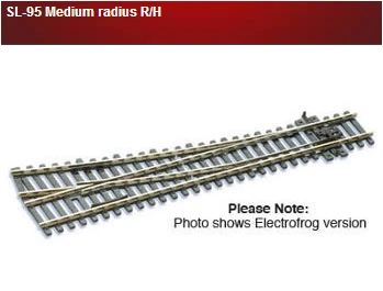 Peco SL-95 Code 100 Medium Radius Turnout – Streamline — Right Hand, Insulfrog, HO