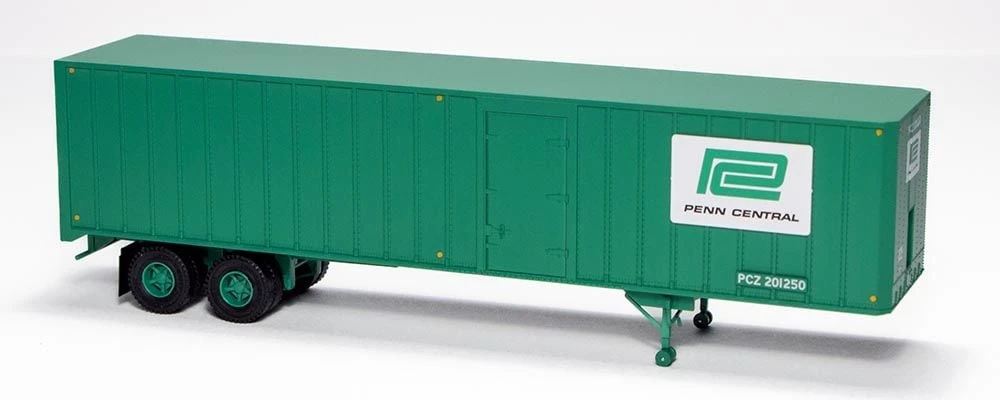 The Pennsylvania Railroad was an early adopter of the scheme with their “TrucTrain” service, but many other railroads offered their own services. The Trailer Train Company (TTX) was formed in November 1955 and quickly became the major player in TOFC (Trailer On Flat Car) operations. Its cars run on railroads throughout North America. Following on the introduction of our PRR and TTX F30D/G flat cars, Rapido is pleased to announce three groups of trailers that perfectly accompany out flat – or anybody else’s! These three body styles have not been available in HO plastic models before and cover the time period from the mid-1950s through the 1970s.