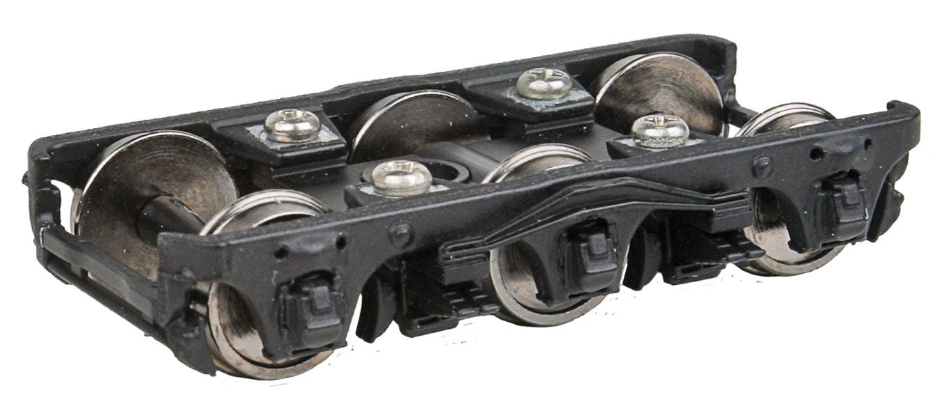 The prototypes of this truck featured one-piece cast sideframes and were used on a wide range of heavyweight equipment. These trucks fit the Walthers (932-series) Heavyweight 12-1 Sleeper, 14-Section Sleeper and 3-2 Observation (all out of production), but adaptable to many other models. An easy upgrade for new and older HO Scale passenger cars, WalthersProto trucks are fully assembled and ready to use with built-in electrical contacts for car lighting and 36″ turned metal RP-25 wheels.