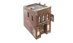 Sully’s Tavern is a neighborhood pub that will add flare to the busiest city street or small town on a rural byway. Sully’s is loaded with architectural detailing and sports an expertly weathered brick exterior, signage, and other scene-setting accessories. There is a printed interior, window treatments and two interior LEDs. See photos for footprint.