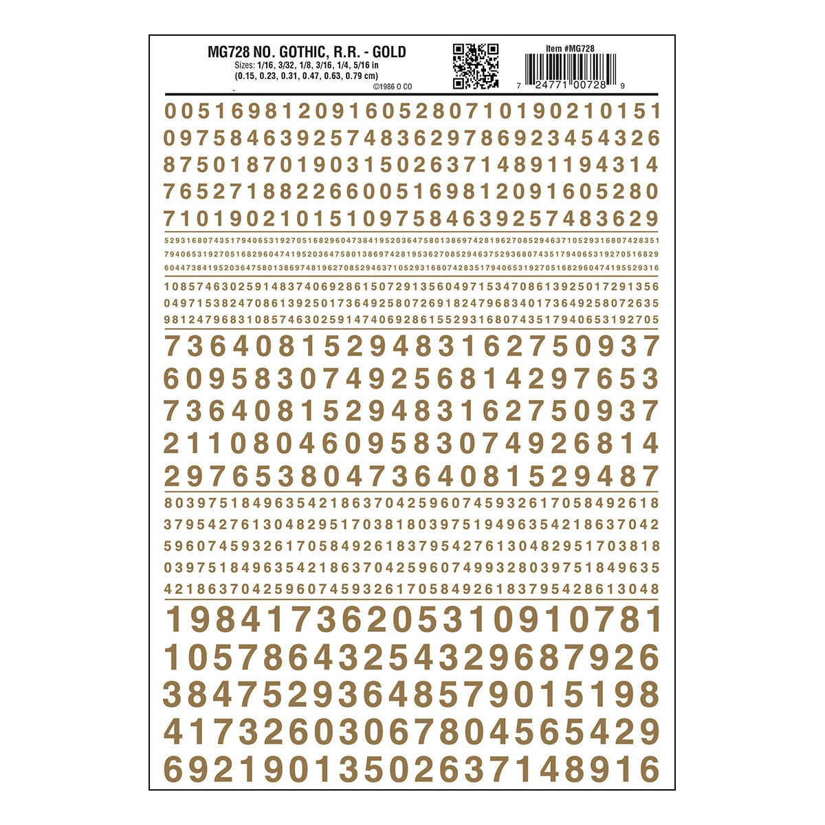 Woodland Scenics WOO728 Dry Transfer Numbers Only – Railroad Gothic — Gold, All Scales